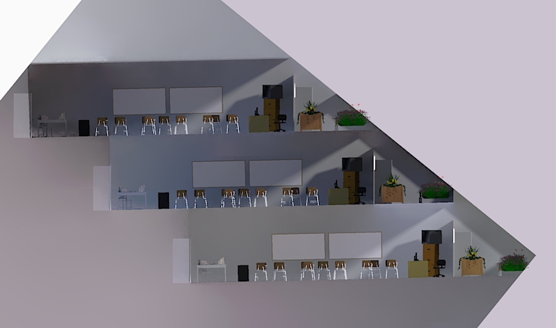 The orange building in the conceptual designs represent the existing building’s relative height and footprint.
