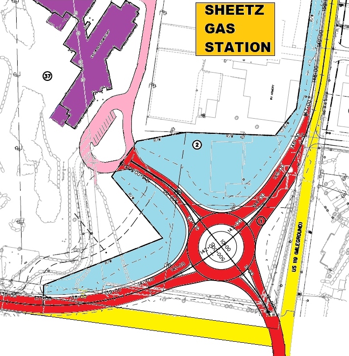 In orange is the location where Sheetz has schematically designed a gas station that it is eager to build by Eastwood Elementary.