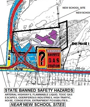 This is the uncomfortable decision that Superintendent Frank Devono and the Monongalia County school board and the WV School Building Authority and the State Board (and Department) of Education and the State Attorney General’s office are forcing onto the Secretary of Transportation. This is the negligent and dangerous situation that county Superintendent Devono and Monongalia County Board of Education are imposing on the residents and commuters and children of the area and region. By state Rule, a new school is not allowed to be located next to arterial highways, but since Director Mark Manchin of the WV School Building Authority and other state officials are determined to allow Mon Schools to break that state Rule, should Mon Schools also be allowed to break the state law of school zone speed limits? Of course not. Instead, given the dangerous intersection and multi-lane highways, the school speed zone law should be intensively enforced.