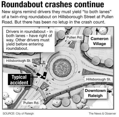 Multi-lane roundabouts allow speeds of entry of 25-30 mph or higher: double the state mandated school zone speed limit.